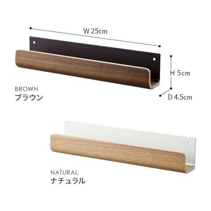 COLOR&SIZE サイズ 約 H5 x W25 x D4.5 cm 材質 スチール(粉体塗装)、天然木積層合板(ラッカー塗装) 重量 約 160g 耐荷重 約 1kg 設置可能場所 柱、かもい、板壁、プリント合板(裏側に水平にサンがある場所) 備考 ※石膏ボード等かたい壁には取り付けできません。