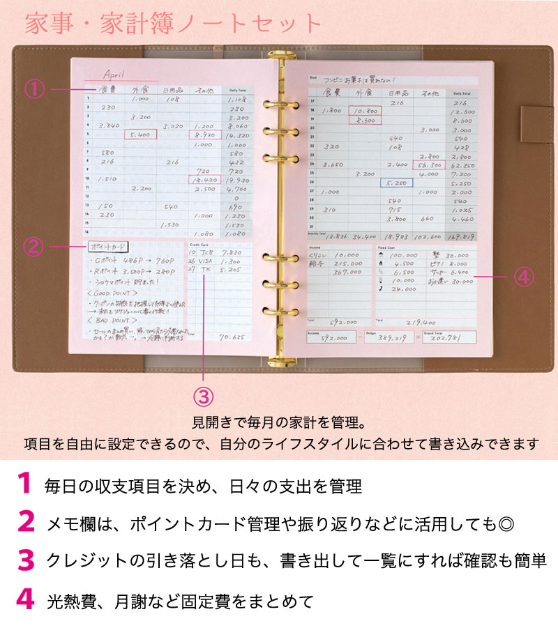 輸入・デザイン文具 / システム手帳・ダイアリー / マークス / MARK'S \毎日の家事や家計を管理するためのリフィルセット/ 見開きで毎月の家計を管理。